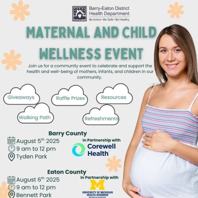 Join us for a community event to celebrate and support the health and well-being of mothers, infants, and children in our community. Empower your journey with resources for new and expecting moms, raffle prizes and giveaways, walking paths, refreshments, and fun for the little ones too! Let’s celebrate healthy starts and bright futures together. Presented by Barry-Eaton District Health Department and Univeristy of Michigan Health-Sparrow. FREE.