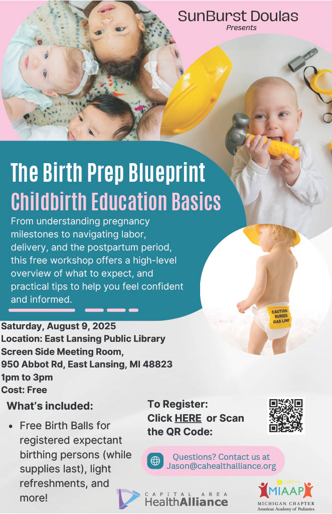 From understanding pregnancy milestones to navigating labor, delivery, and the postpartum period, this FREE workshop ("The Birth Prep Blueprint - Childbirth Education Basics") offers an overview of what to expect and practical tips to help you feel confident and informed. Event includes free birth balls and baby gear for registered expectant birthing persons, light refreshments, and guidance from licensed doulas. REGISTER AT https://bit.ly/BirthPrepBlueprint. FREE.
