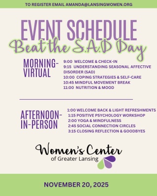 Morning: Virtual Sessions Afternoon: In-Person at the Women’s Center of Greater Lansing