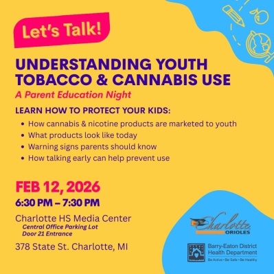 Presented by the Barry-Eaton District Health Department. Charlotte parents only please! FREE.