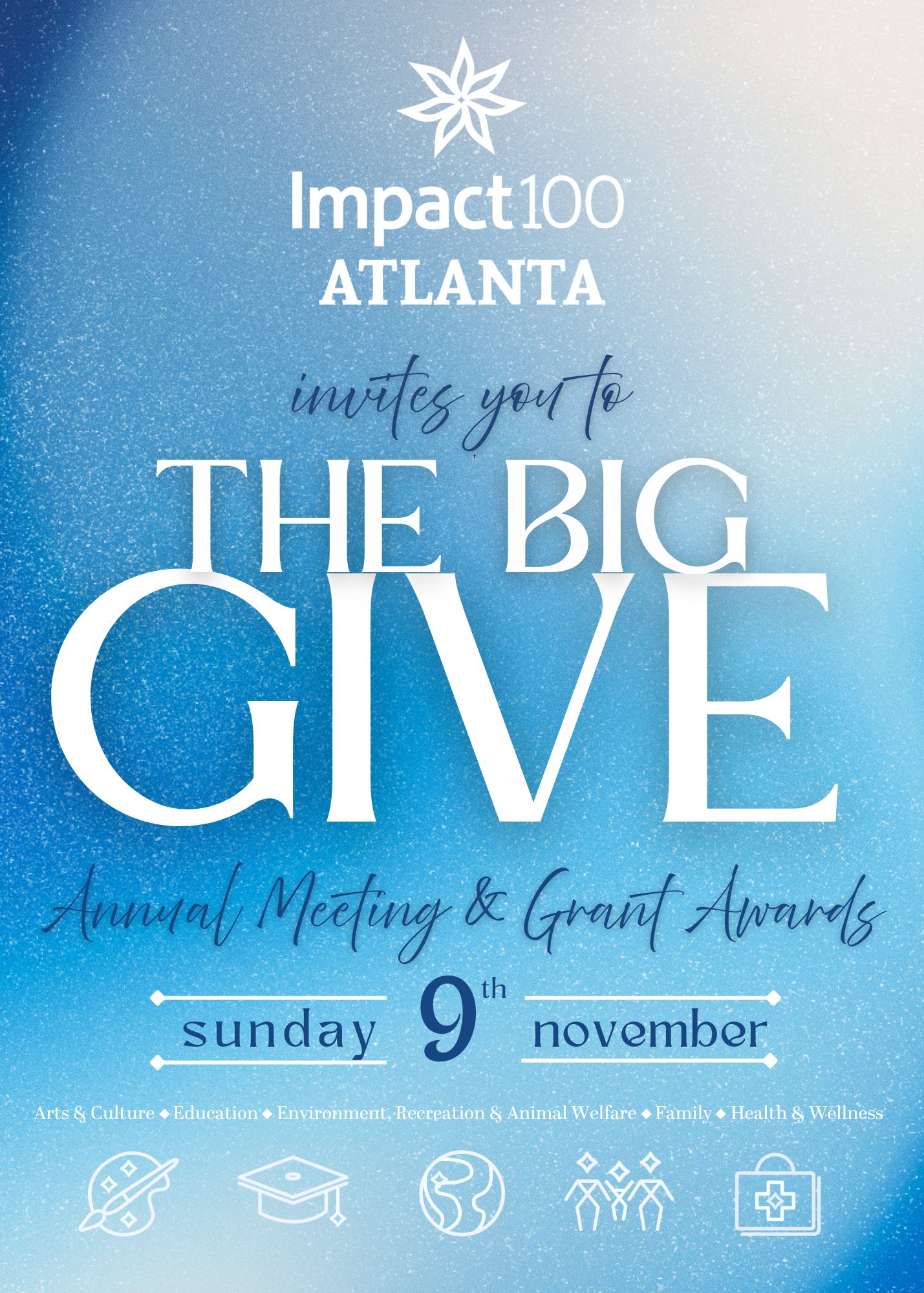 Join us for The Big Give on Sunday, November 9 at 2 PM at The Carlyle. This is our Annual Meeting and Grants Awards Celebration, the most anticipated and exciting event of the year. Members will hear from our nine inspiring nonprofit finalists and cast their votes to award four $89,000 grants. Together, we will celebrate surpassing $1 million in giving to the Atlanta community in just four years.