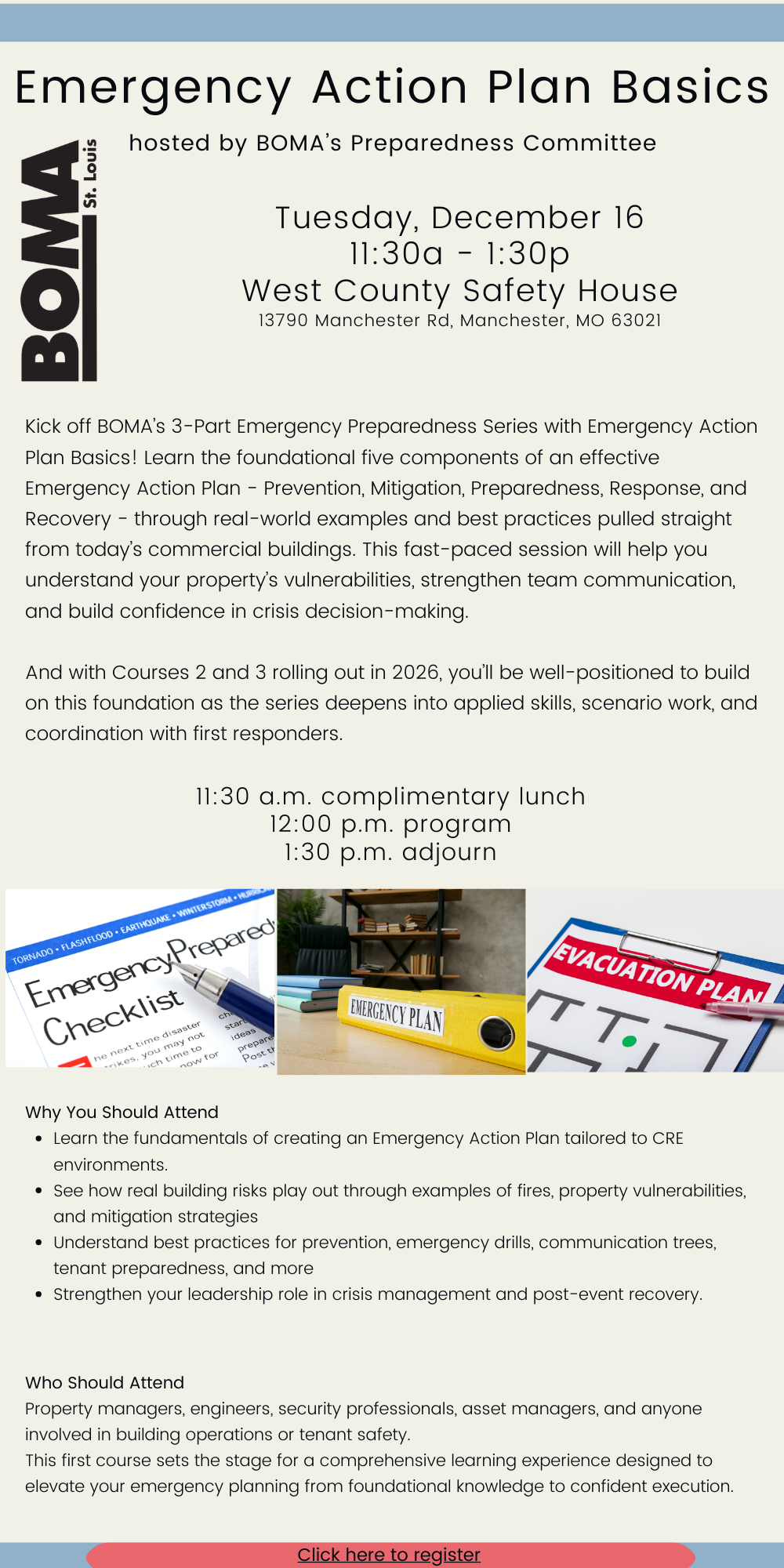 Learn the foundational five components of an effective Emergency Action Plan - Prevention, Mitigation, Preparedness, Response, and Recovery - through real-world examples and best practices pulled straight from today’s commercial buildings.