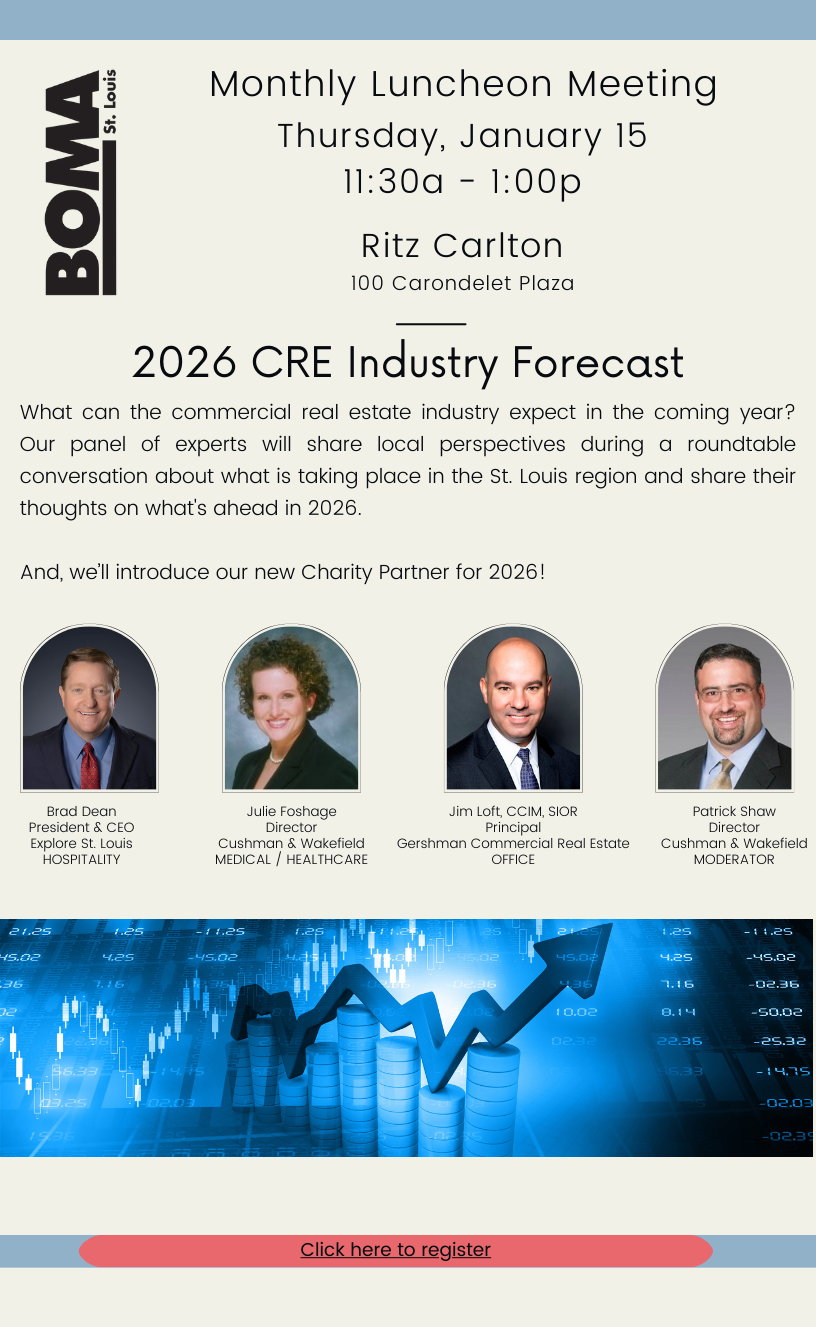 What can the real estate industry expect in the coming year? Our panel of experts will share local perspectives during a roundtable conversation about what is taking place in the St. Louis region and share their thoughts on what's ahead in 2026.