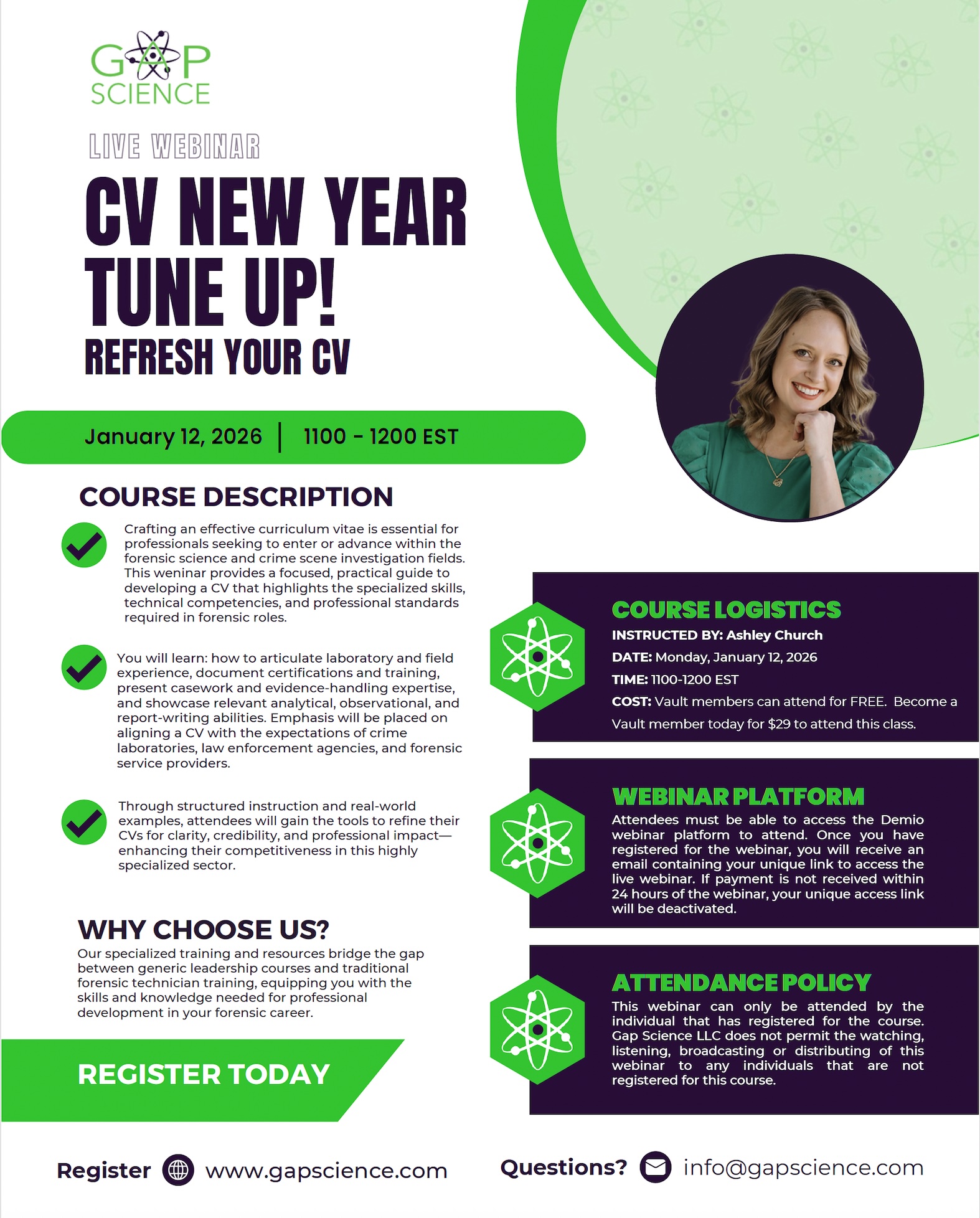 This webinar provides a focused, practical guide to developing a CV that highlights the specialized skills, technical competencies, and professional standards required in forensic roles.