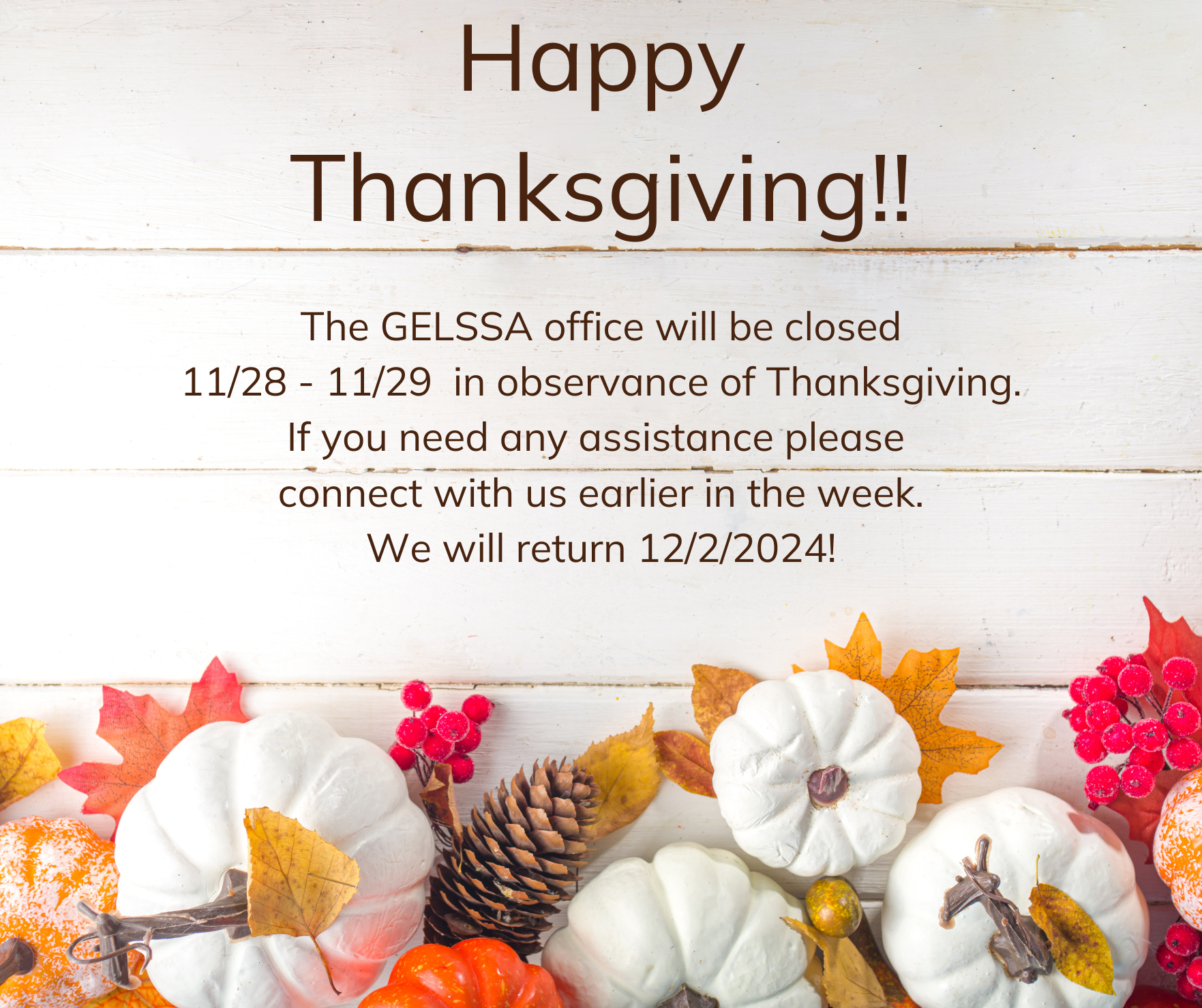 Thank you for your ongoing support and commitment to GELSSA. I am excited about the journey ahead and look forward to working with each of you to make 2025 a year of continued growth and success. Wishing you all a very Happy Thanksgiving! Sincerely, Brandon Shepard GELSSA President |