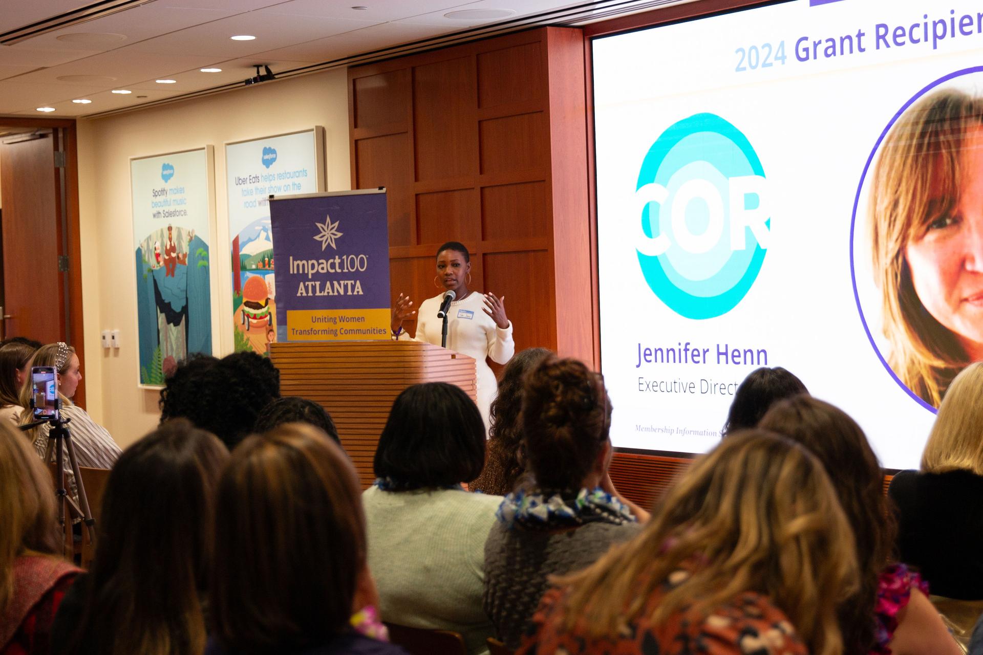 Our incredible 2024 grantees, COR, Second Helpings Atlanta and The Empty Stocking Fund brought Impact100 Atlanta’s mission to life, sharing the inspiring stories behind their projects and the transformational impact of our grants. Their words reminded us why we do this work—why we come together, pool our resources, and make a transformative and sustainable difference in our community that will impact generations to come. It was also special to have one of our 2023 Grant Recipients in the building with us, Larry Witherspoon, from Jumpstart Automotive Training Center. A big thank you to our Events Chair, Cathy Tilman, for her hard work and dedication to making these events so special. We have shared some photos as well as a full photo gallery below. To download photos the pin is 7685.