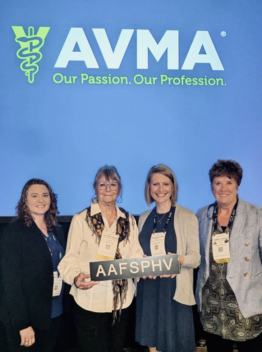 I want to give a shout out to Dr. Amanda Sorensen, AAFSPHV Communications Director, for her hard work in providing information for our bi-weekly newsletters and especially for her participation in the One Health Heroes podcasts, which are well worth a listen. And, if any of you are interested in providing news for the newsletter or assisting Mandy in a podcast, please contact her directly at: editor@aafsphv.org