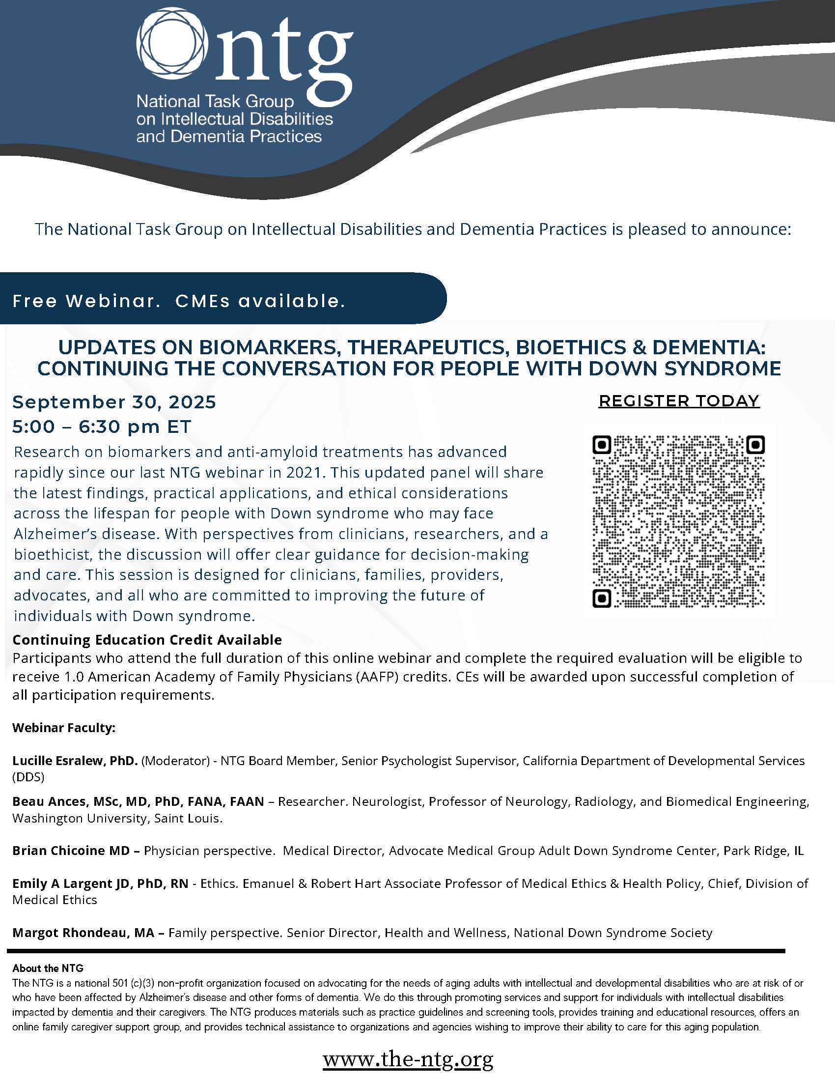 NTG Webinar: The Latest on Biomarkers & Alzheimer’s in Down Syndrome