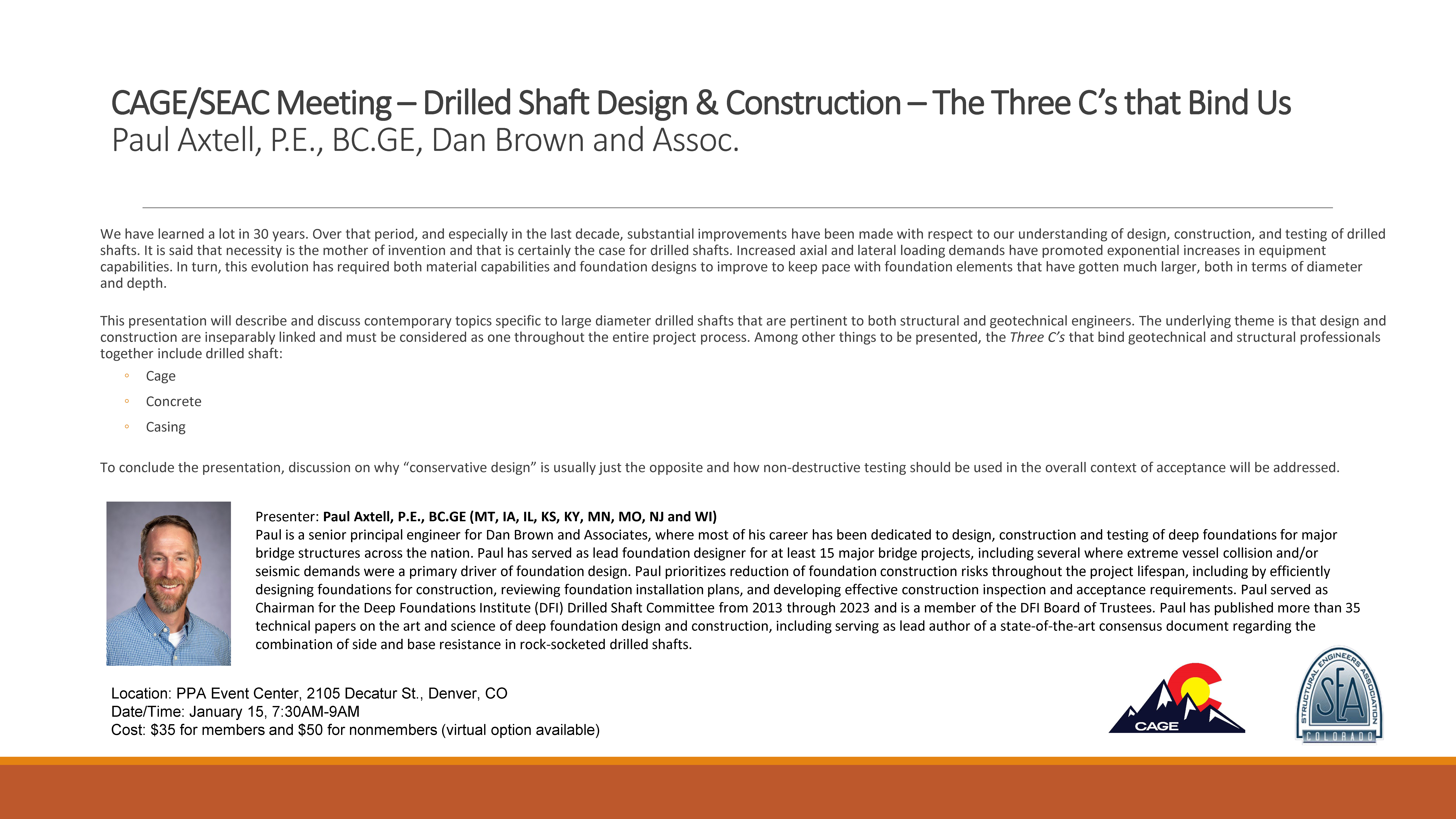 CAGE/SEAC Breakfast Meeting - Drilled Shaft Design & Construction – The Three C’s that Bind Us