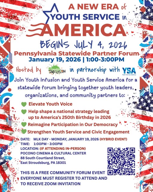 This is a free, hybrid community forum hosted by Youth Infusion in partnership with Youth Service America (YSA) and PennSERVE.