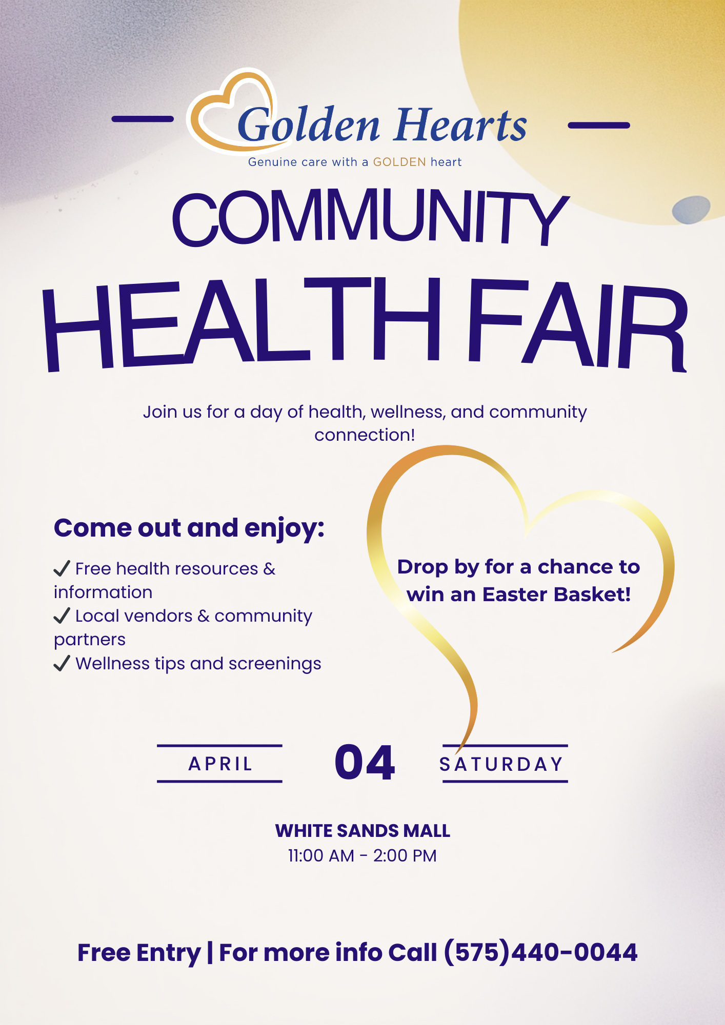 Join us for a day of health, wellness, and community connection. Free to the public and vendor registration. There will be an Easter Basket Raffle. To register as a vendor, please follow this link: