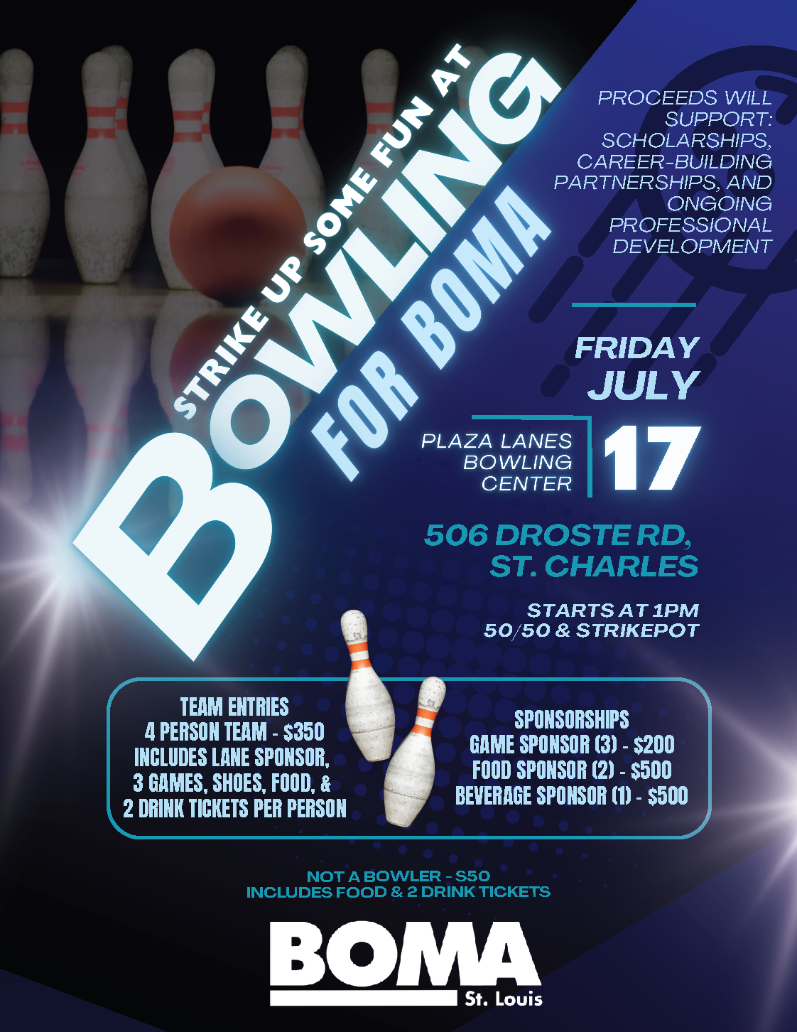 Help BOMA bridge the workforce gap and build a stronger future for the commercial real estate industry, all while enjoying an afternoon of fun and friendly bowling competition. Proceeds from this event will support scholarships, career-building partnerships, and ongoing professional development.