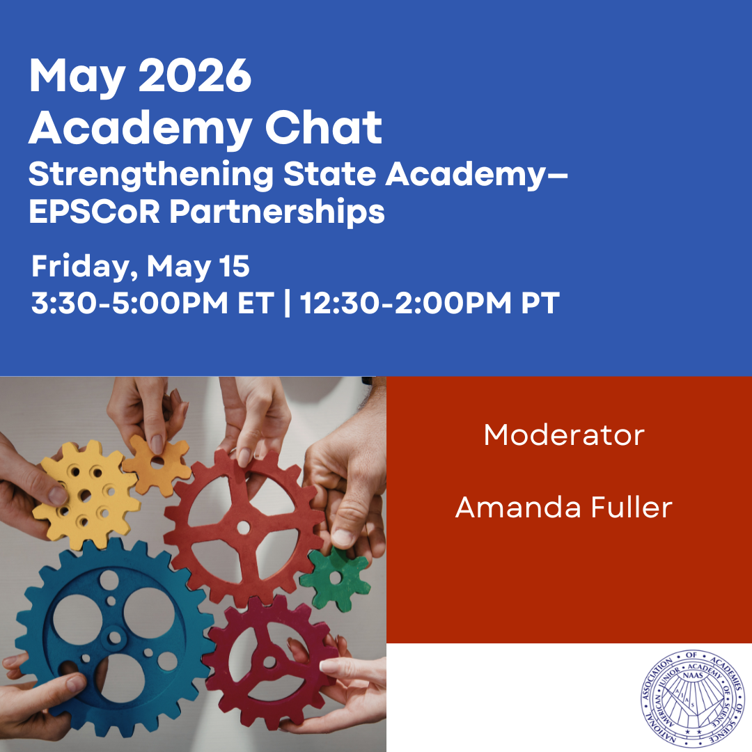 Join us for a session focused on strengthening partnerships between state Academies of Science and EPSCoR offices. This Academy Chat will explore how Academies in EPSCoR jurisdictions are collaborating—or could collaborate—with their state EPSCoR programs to advance shared goals.