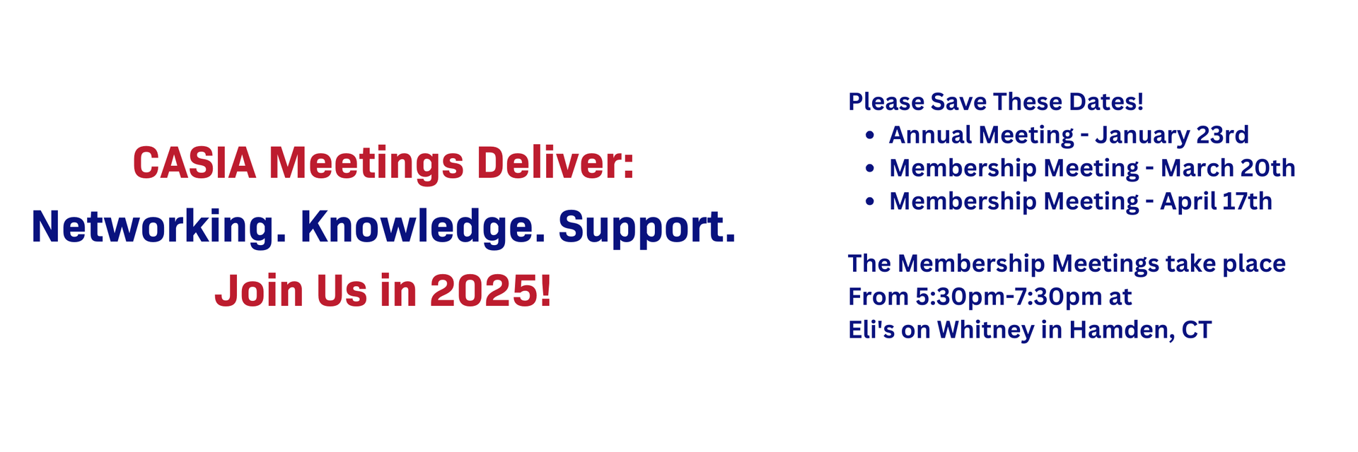 I’m especially excited about what’s to come as we look ahead to 2025. The next meeting is the CASIA Annual Meeting on January 23rd. This will be an important event where we will vote in our new slate of officers, ensuring that our leadership continues to reflect the dynamic energy and vision of our membership. We’ll also be voting on proposed changes to our bylaws, which will help strengthen and adapt our association to the evolving needs of our industry.