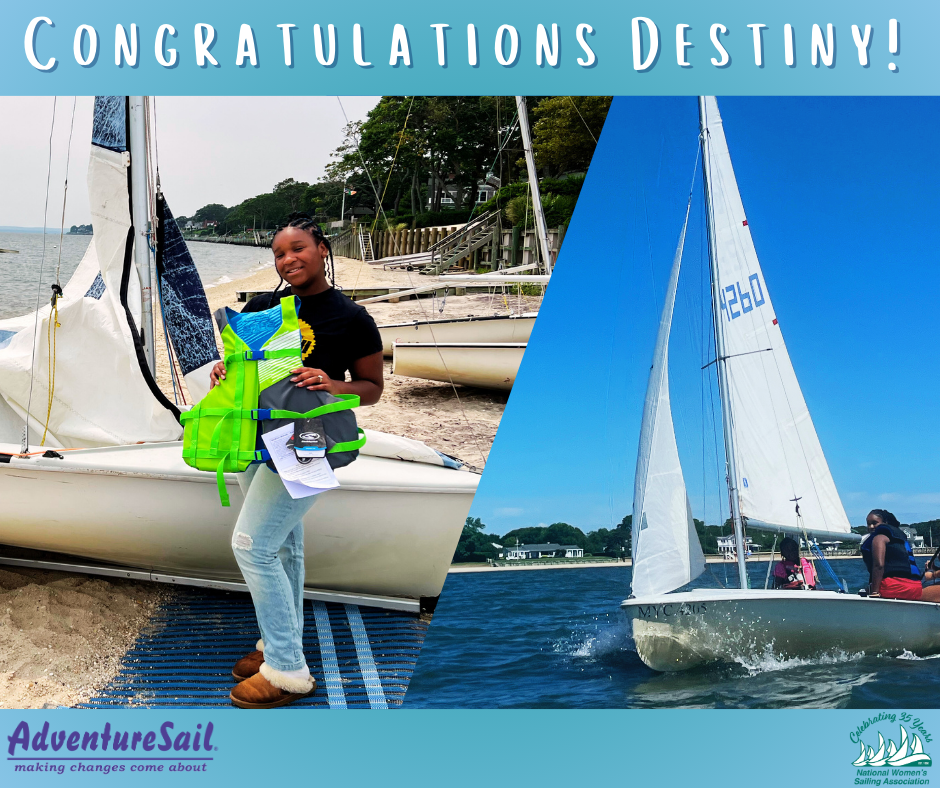 After participating in AdventureSail at the Mattituck Yacht Club earlier this summer, 14-year-old Destiny didn’t just fall in love with sailing, she saw a future in it. Inspired by her experience and encouraged by her instructor, Destiny applied for a Learn to Sail scholarship through NWSA and was selected for her passion, determination, and heartfelt goal of one day teaching others like herself. Destiny is a dedicated participant in youth leadership programs, and is known for stepping up to help others and setting a positive example. A confident, compassionate, and driven young woman, she is always ready to mentor younger peers or lend a hand behind the scenes, and says that “learning to sail would be a beneficial survival skill, but it also feels like a future.” The NWSA is proud to support Destiny’s next chapter on the water, and we can’t wait to see where she sails from here!