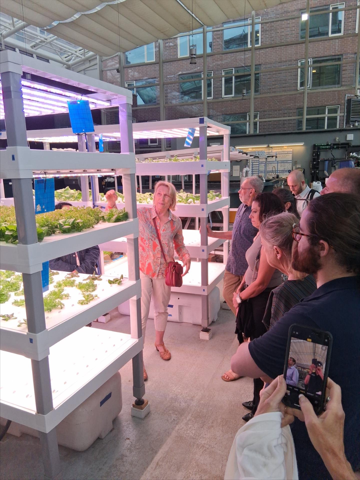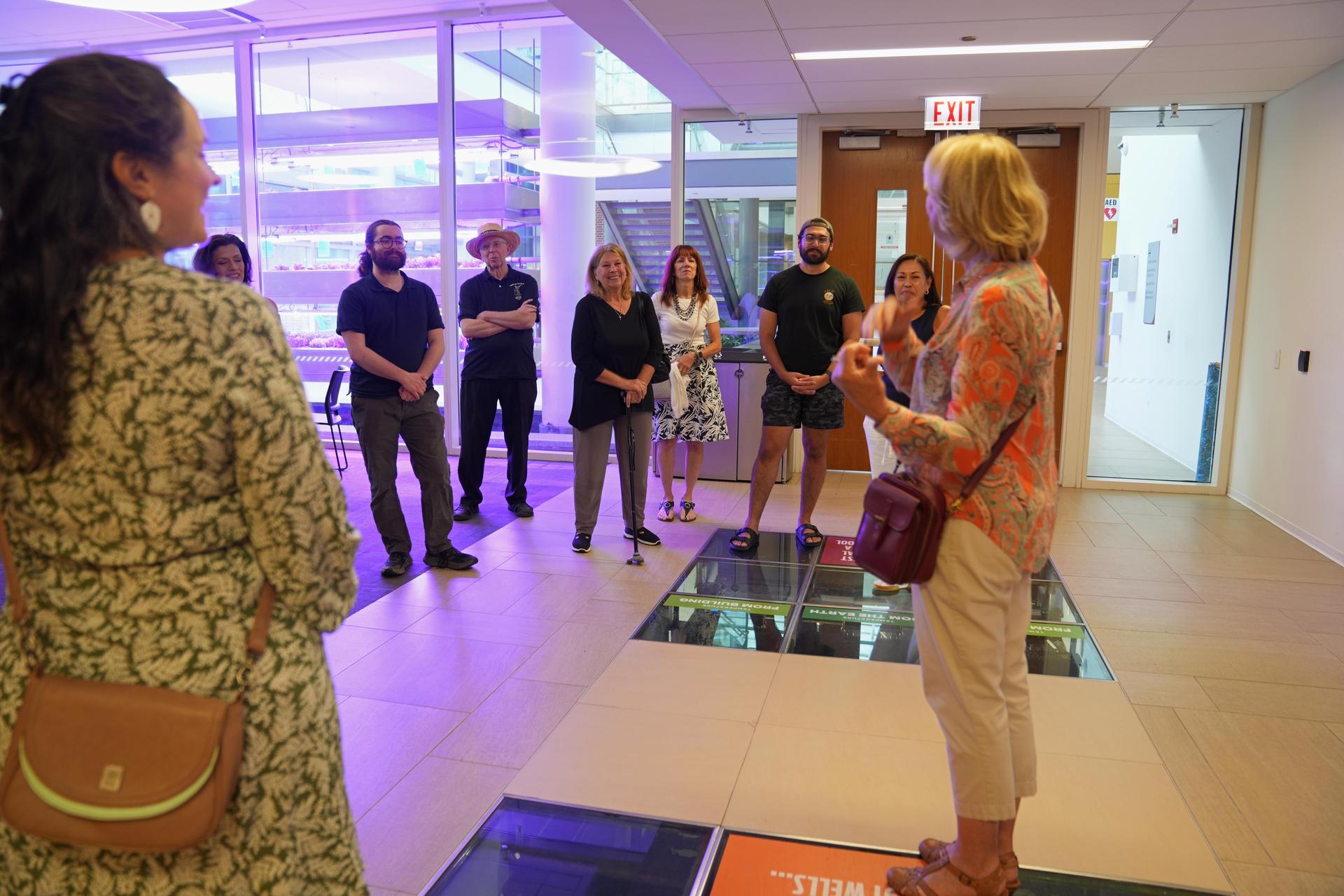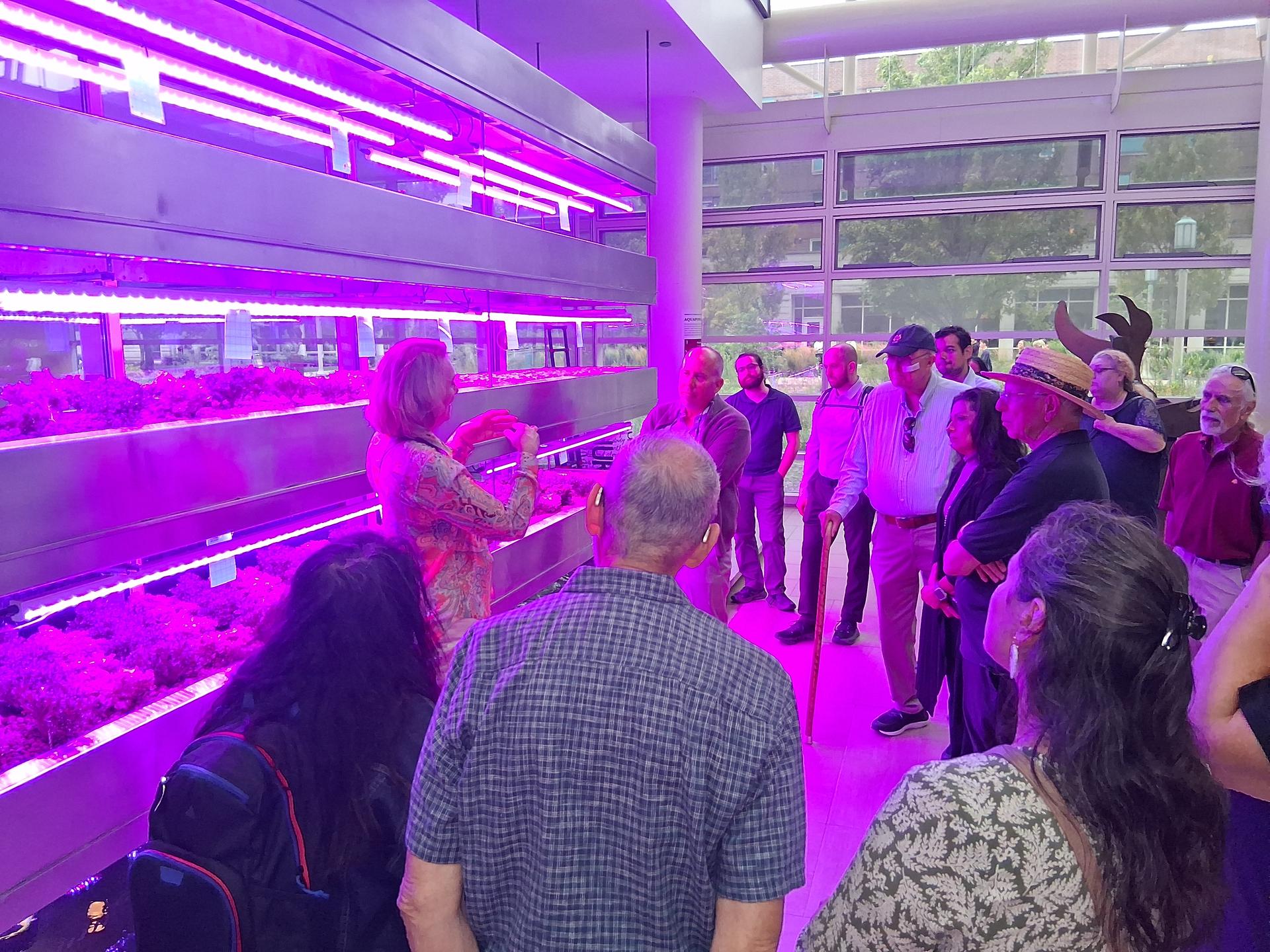 Another tour highlight was SES’s 3,100 sq ft greenhouse, used for educational activities, sustainable food systems research projects, and urban agriculture production, with aquaponics (combining fish and sustainable plant production) and hydroponics (for growing vegetables without soil) facilities where students studying sustainable food systems grow and sell their organic produce and tilapia. |