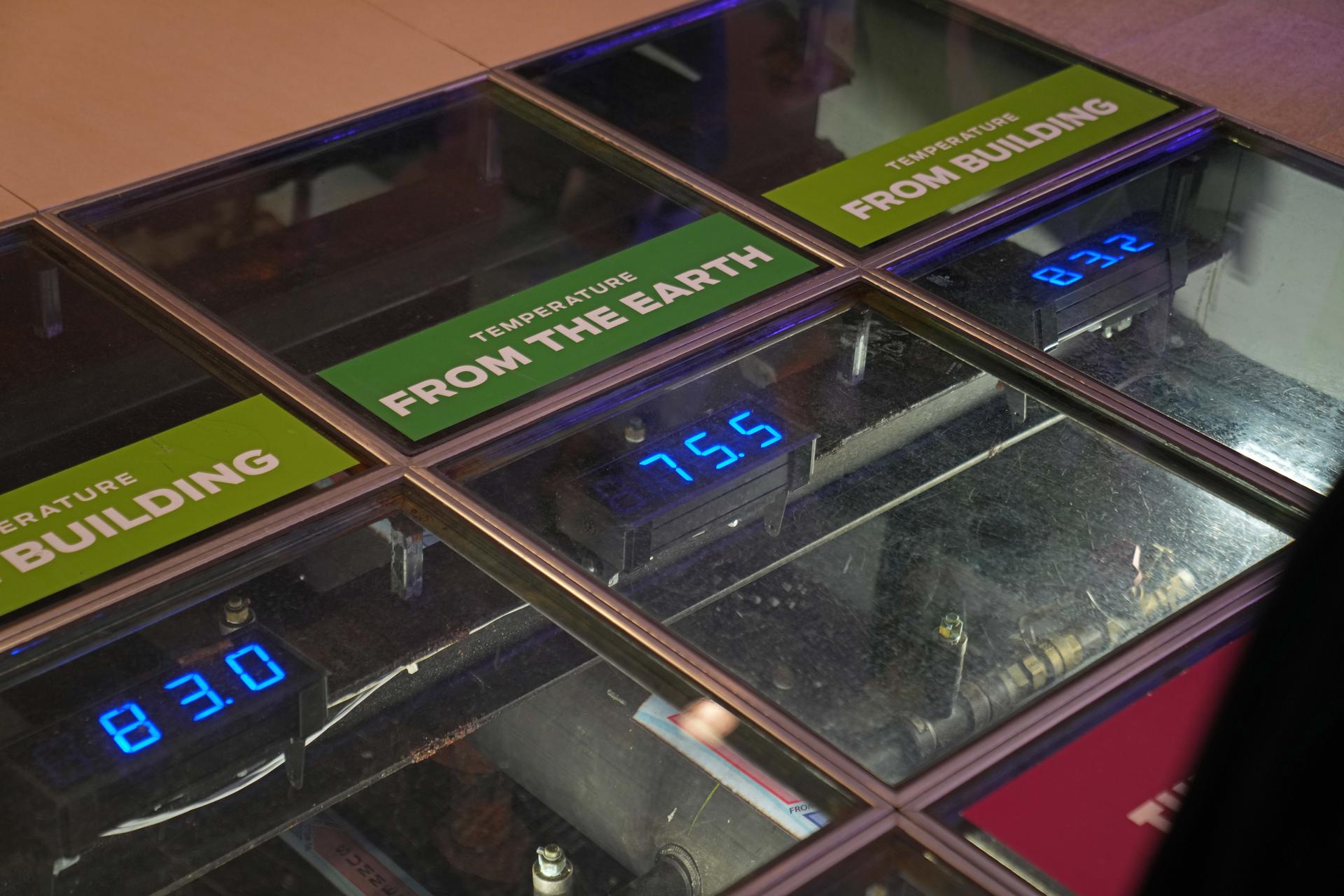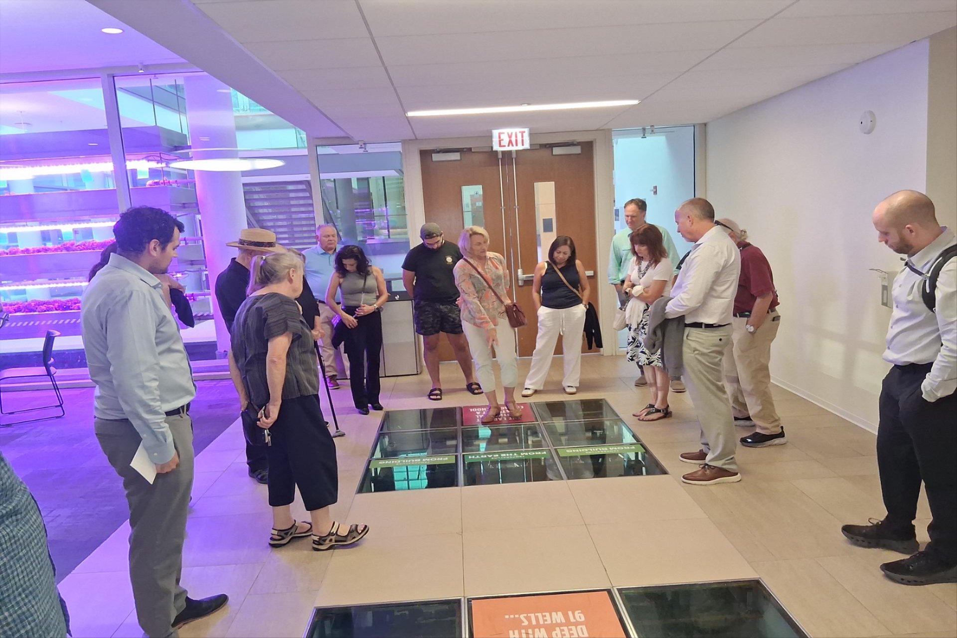 One of the tour highlights of the School was the geothermal heating and cooling system (largest in Chicagoland) which heats and cools the 217,000 ft3 facility. A 91-well geothermal system heats and cools the SES building by tapping into the earth’s constant temperature deep underground (500 feet). The system is highly efficient, cutting the building’s heating and cooling costs by 30 percent. “Viewing windows” built into the floor encourage a “bird’s eye view” of some of the system’s subsurface plumbing.