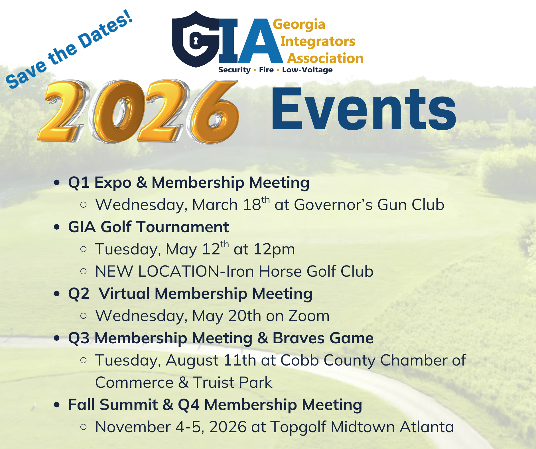 I can’t wait to see everyone at our next event, the Q1 Expo & Membership Meeting on March 18th at the Governors Gun Club in Kennesaw, GA. Mark your calendars now! This will be a great way to kick off the year with strong education, hands-on sponsor engagement, and the kind of connection you can only get through GIA. To everyone who attended the Fall Summit, thank you for showing up, engaging, and investing in yourselves and in this association! To those who couldn’t make it this year, you were missed, and I hope you’ll join us in March. The momentum we’re building is real, and it’s fueled by members who stay involved. Thank you for your continued support, and I’ll see you soon! Sincerely, Brandon Shepard GIA President |