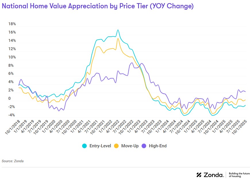 'The holding pattern we are seeing today from prospective buyers is tied to economic anxieties and the job market,' said Ali Wolf, chief economist for Zonda and NewHomeSource. 'While this makes for a tricky backdrop today, demographics and deferrals provide a nice setup to a stronger market once macro factors stabilize and consumer confidence returns.'" |