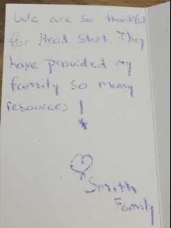 Head Start families took time during last month's Head Start Days to write heartfelt birthday messages to send to our friends at the US Health & Human Services Department in DC. Head Start children drew pictures of their favorite things about their program and decorated the birthday cards with stickers. We're sure these will bring smiles to our hard working government during these times! |
