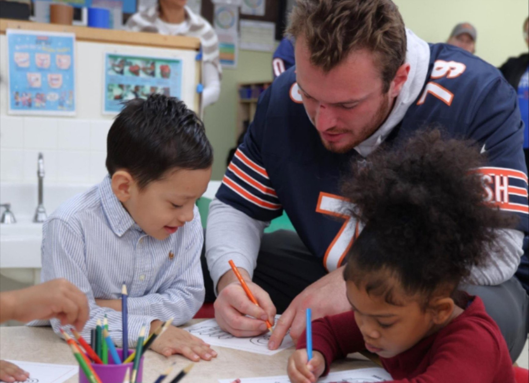 The Howard & Evanston Community Center in Chicago received a special visit from Chicago Bears football players Joe Thuney (#62) and Theo Benedet (#79). They stopped by to read and color with Head Start students. It was a very memorable morning at Metropolitan with Monsters of the Midway! |