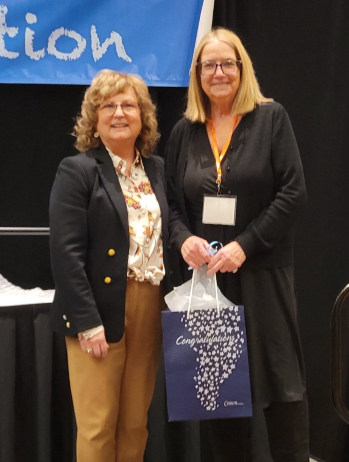 | IHSA Executive Director Lauri Morrison-Frichtl with Administrator of the Year Kelly Neidel. |