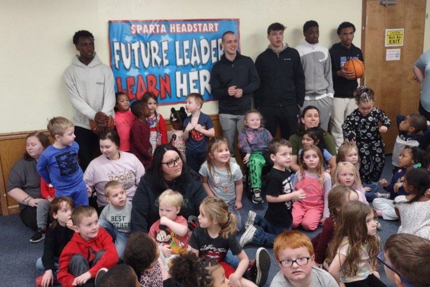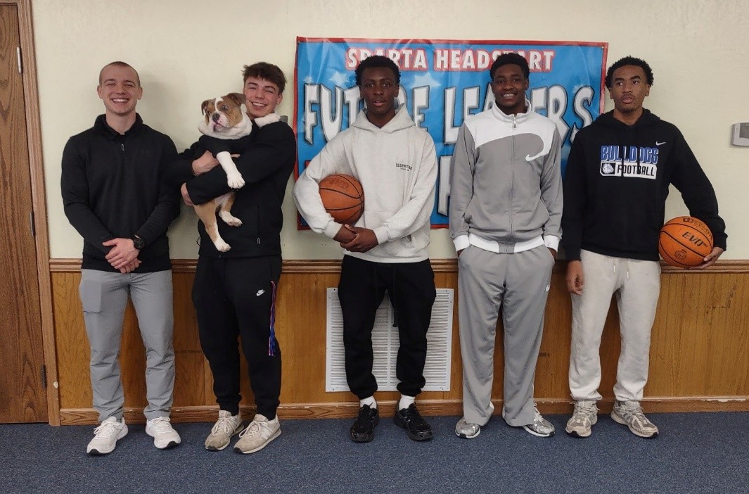 Members of the Sparta High School Bulldog Boys Basketball Team stopped by which was very special because they are former Head Start students! They shared their personal stories and future aspirations and goals. For example, senior DeQuan Woods spoke about his plans to join the Air Force following graduation. Fellow senior Grant Allard encouraged students to pursue their dreams, recalling his own time in their seats as a young child. Allard has been accepted to the U.S. Military Academy at West Point and will attend after graduating this spring.