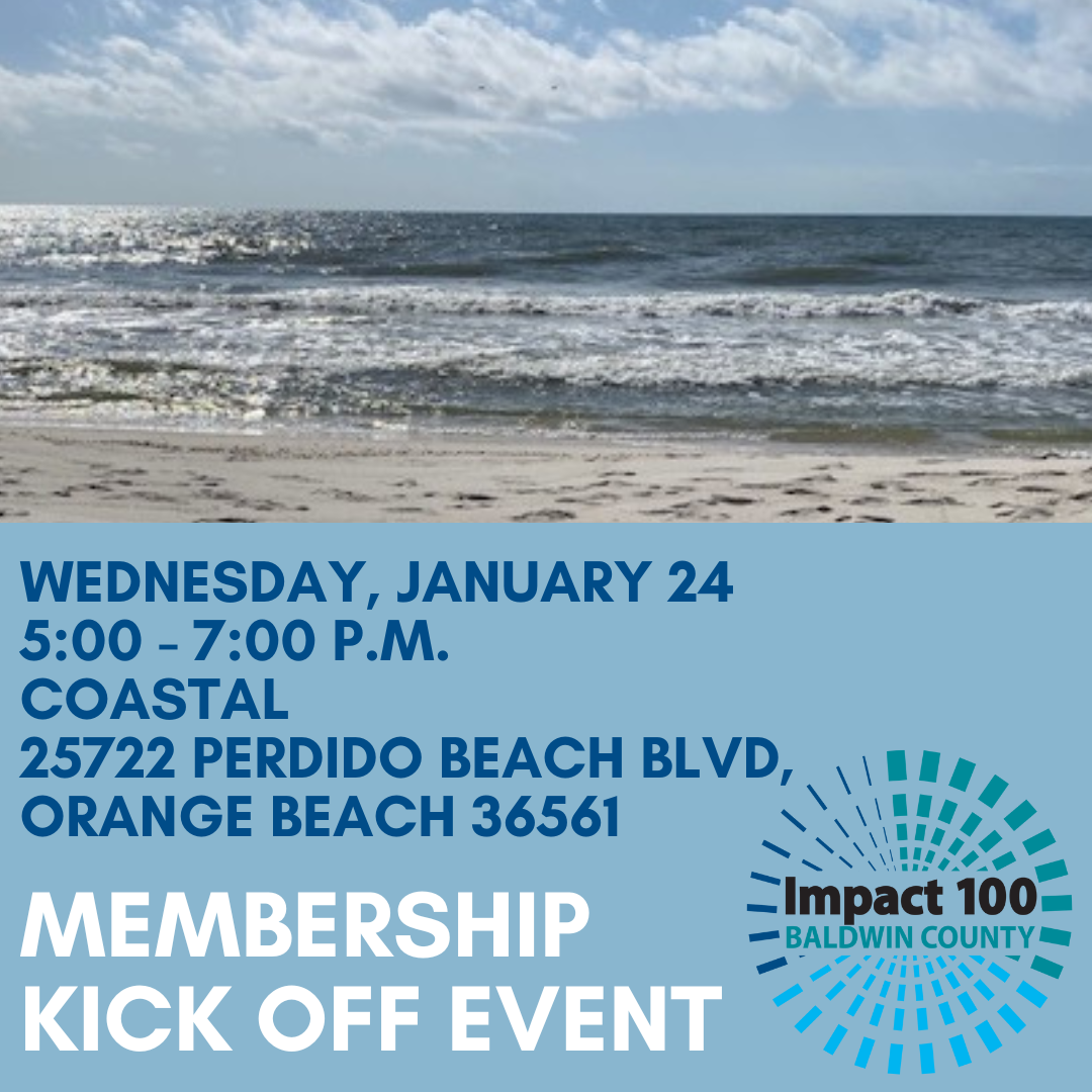 Events available for Registration... Meet & Mingle - Timbercreek Clubhouse 3/12/2026 register for this event... Just for Fun - Tee Off at The Wharf 3/18/2026 register for this event... Meet & Mingle - Sweetwater Cafe at Lakewood Club 3/19/2026 register for this event... Impact 100 Baldwin County Grant Application Workshop 4/30/2026 Registration is Coming Soon for this event |