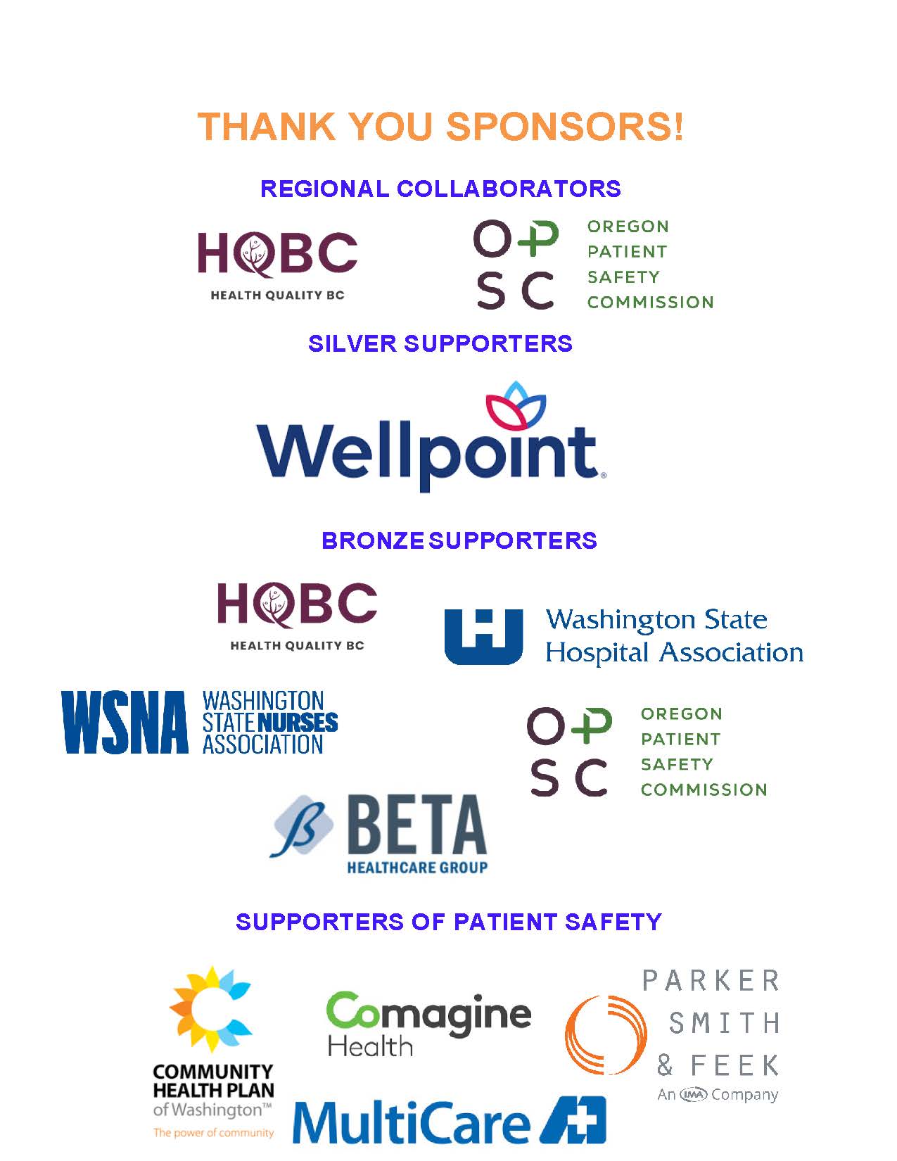The Northwest Patient Safety Conference is an annual event that brings together healthcare leaders, advocates, and patients concerned with the critical topic of patient safety. This year’s virtual conference, ½ days on October 16 & 17, continues our partnerships with the Oregon Patient Safety Commission and the British Columbia Patient Safety and Quality Council.