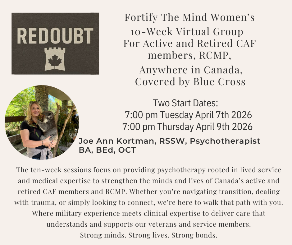 REDOUBT is a community of CAF veterans helping veterans through coaching, peer support, and psychotherapy. Built by those who’ve served, for those who’ve served, REDOUBT offers a space for growth, healing, and purpose. Whether you’re navigating transition, dealing with trauma, or simply looking to connect, REDOUBT is there to walk that path with you—veteran to veteran.